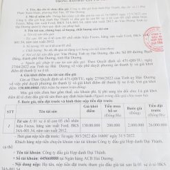 1- Tên, địa chỉ tổ chức đấu giá: Công ty đấu giá hợp danh Đại Thành, địa chỉ: số 30, phố Dã Tượng, phường Lê Thanh Nghị, TP Hải Dương.